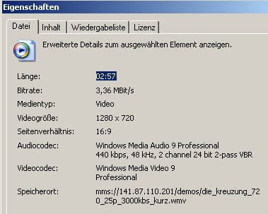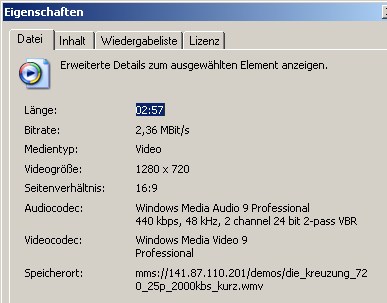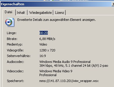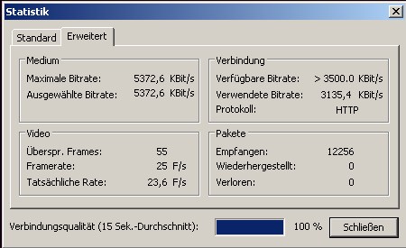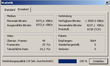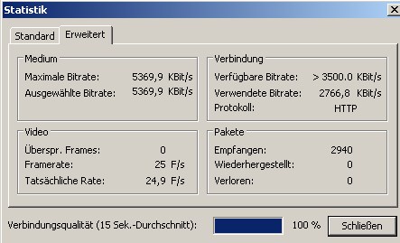 Format: 720 * 576 Bandbreite Downstream: 2064 Kbit/s