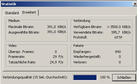 Format 320*240 Bandbreite Downstream: 391 Kbit/s